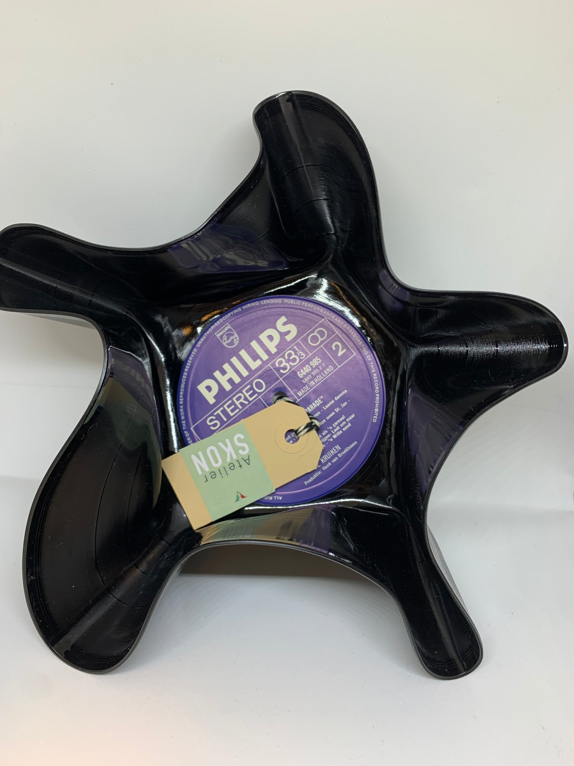 In deze handgevormde LP bakjes zit muziek! Deze bakjes worden namelijk gemaakt van oude vinylplaten, die we krijgen van de lokale kringloopwinkel.