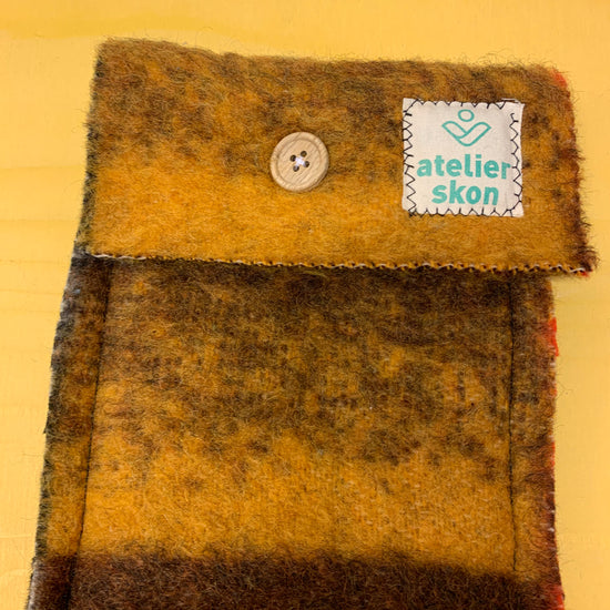 Etuis gemaakt van oude wollen dekens, lekker degelijk en oersterk maar ook super zacht voor kwetsbare spullekes.