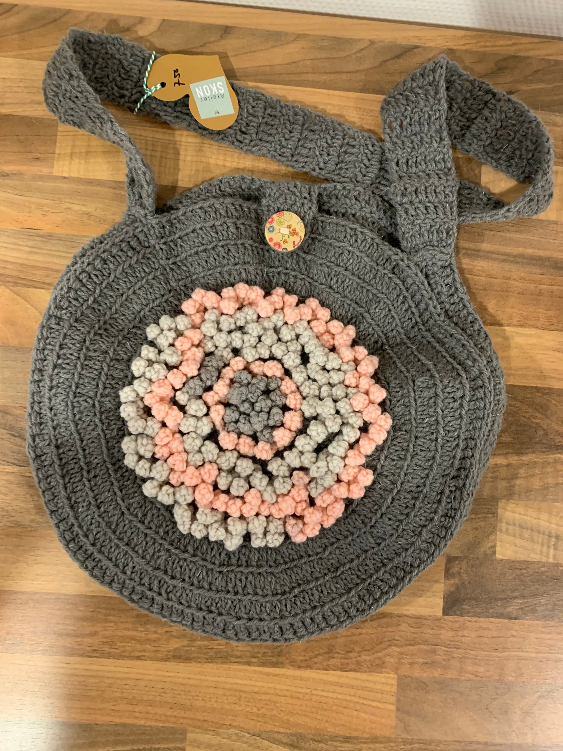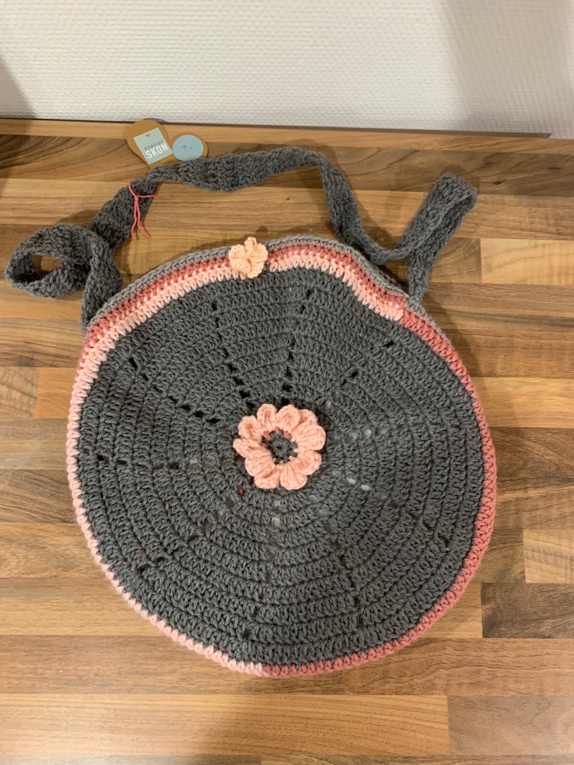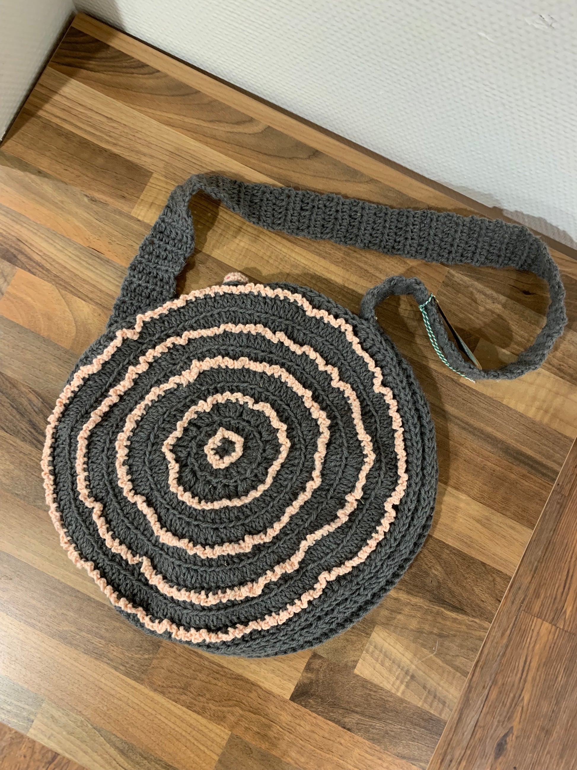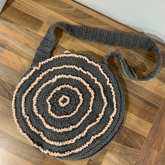 Deze super hippe ronde tassen zijn gehaakt door Petra. Petra staat bekend om haar extra frivole toevoeggingen en keurige afwerking.