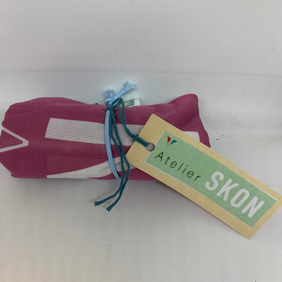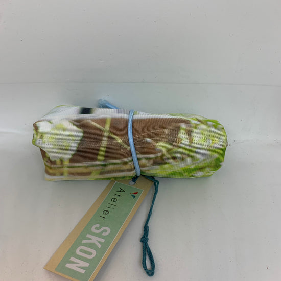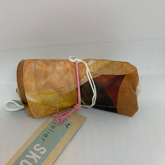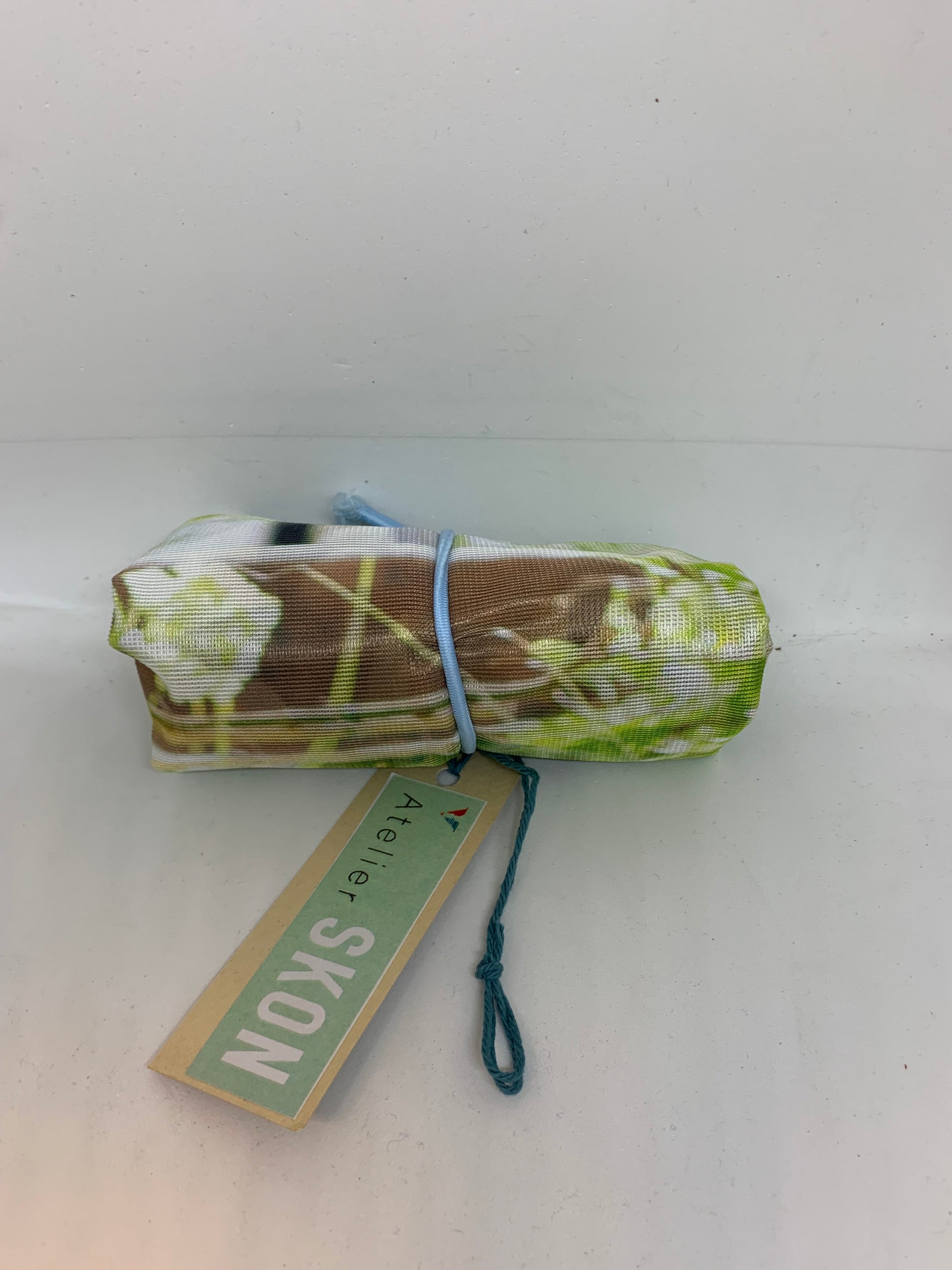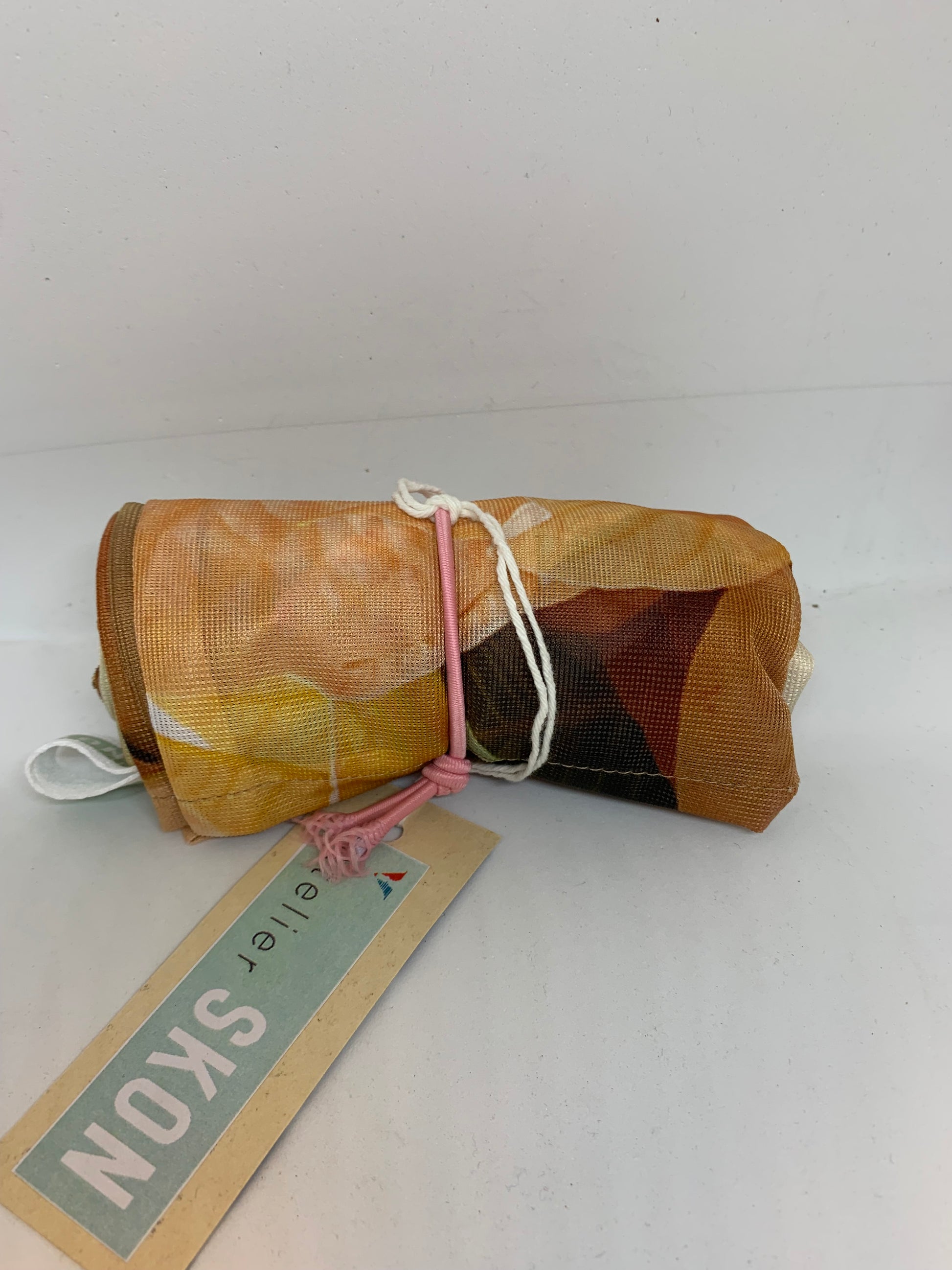 Een heel hendig opvouwbaar taske gemaakt van dun maar mega stevig stof van oude stoffen promotie banners van, dutch design week Berckelhof, en vlaggen van Daf en Vitalis. In vele vrolijke kleuren en printjes allemaal uniek, handig voor in je handtas, auto op reis of de fiets.