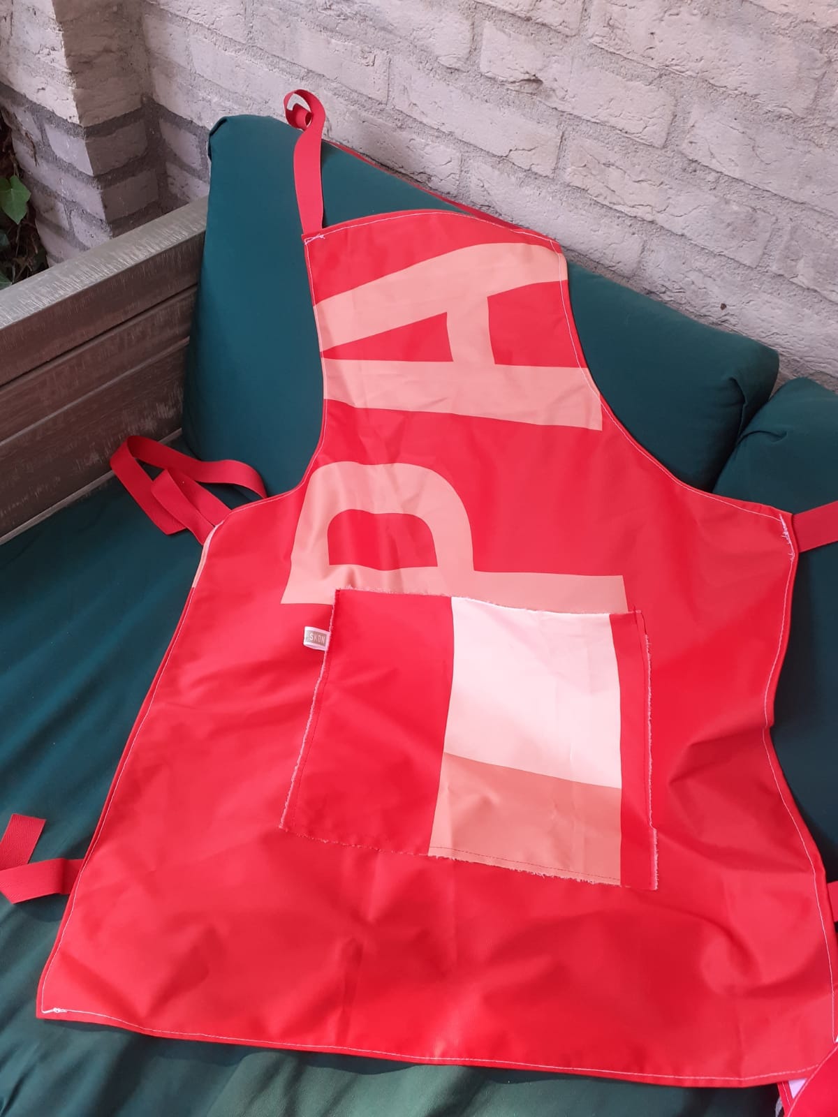 Voor iedereen: of je nu een hobby of professionele kok bent, een SKON schort komt altijd van pas. Een schort gemaakt van oude stoffen zoals vlaggen of banners van o.a. Parktheater Eindhoven, DAF en de Bijenkorf.